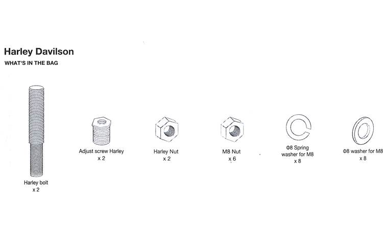 This bolt kit allows you to install JBL Cruise handlebar-mount Bluetooth® speaker pods on 1982-up Harley-Davidson motorcycles.